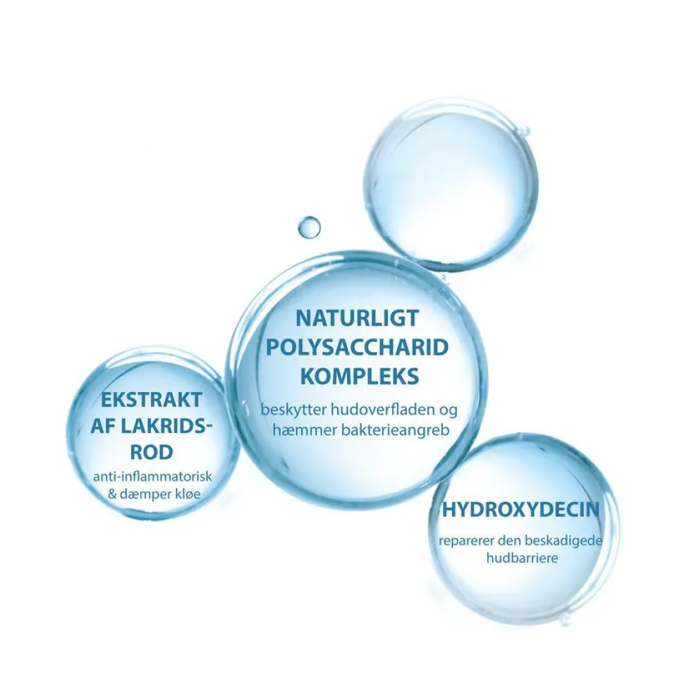 Tilfører intensivt fugt og respekterer den sarte hud omkring øjnene. Beroliger øjeblikkeligt og kløe reduceres straks efter påføring.