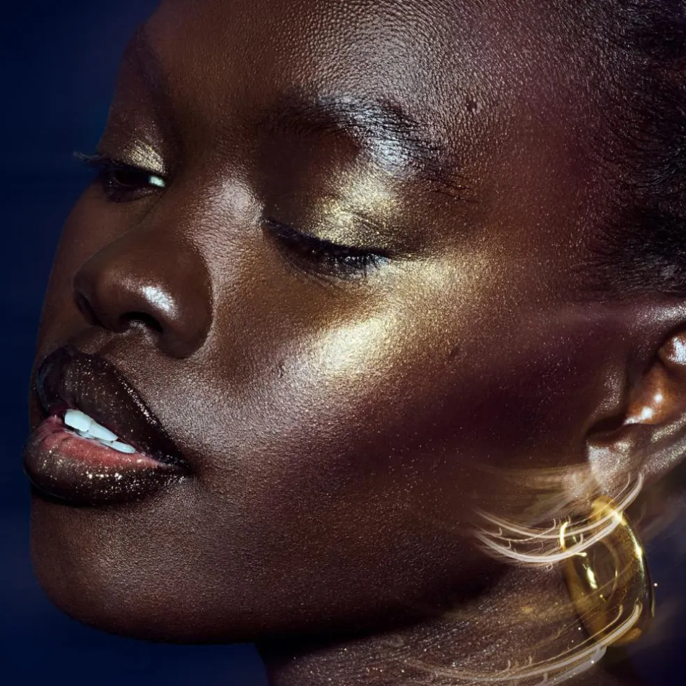 En diamantskinnende highlighter, der giver en 3D-effekt af intens shimmer til både ansigt og krop.