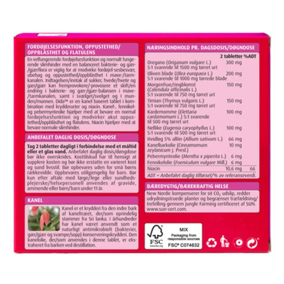 Dida tabletter indeholder naturlige krydderi-ekstrakter fra blandt andet kanel, nellike og pebermynteolie.