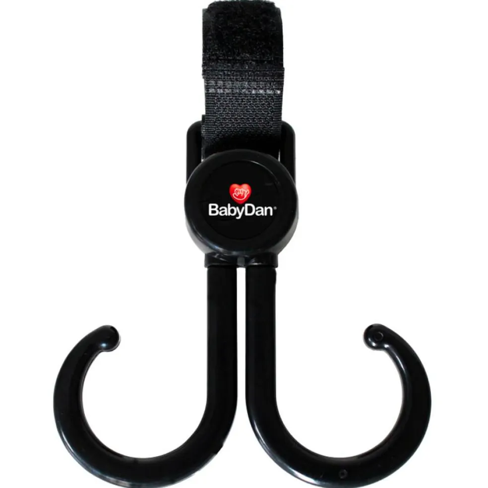 Den dobbelte krog gør det nemmere at have en taske eller indkøbsposer med, når du er ude med klapvognen. Når poserne eller tasken hænger på krogen, er det meget nemmere og mere sikkert for dig at køre klapvognen. Krogen monteres med en justerbar velcro-strop, som er nem at sætte på og tage af.