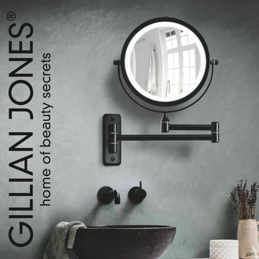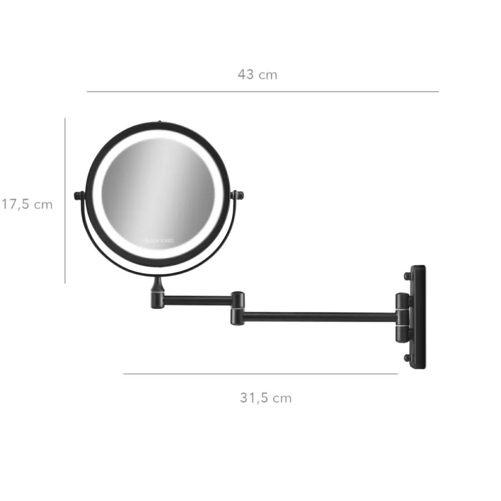 Selve spejl hovedet er 17,5 cm i diameter. Nem rengøring med sprit og fugtig klud.