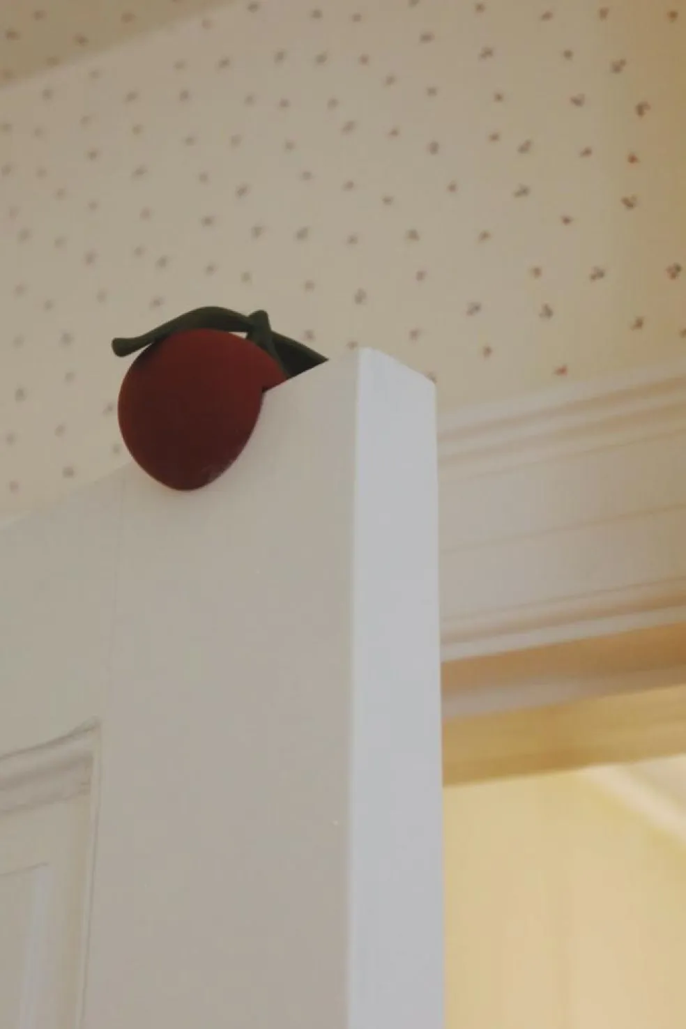 Dørstopperen er en både praktisk og stilfuld løsning, som sikre at døren ikke smækker i, med små børnefinrge i nærheden.