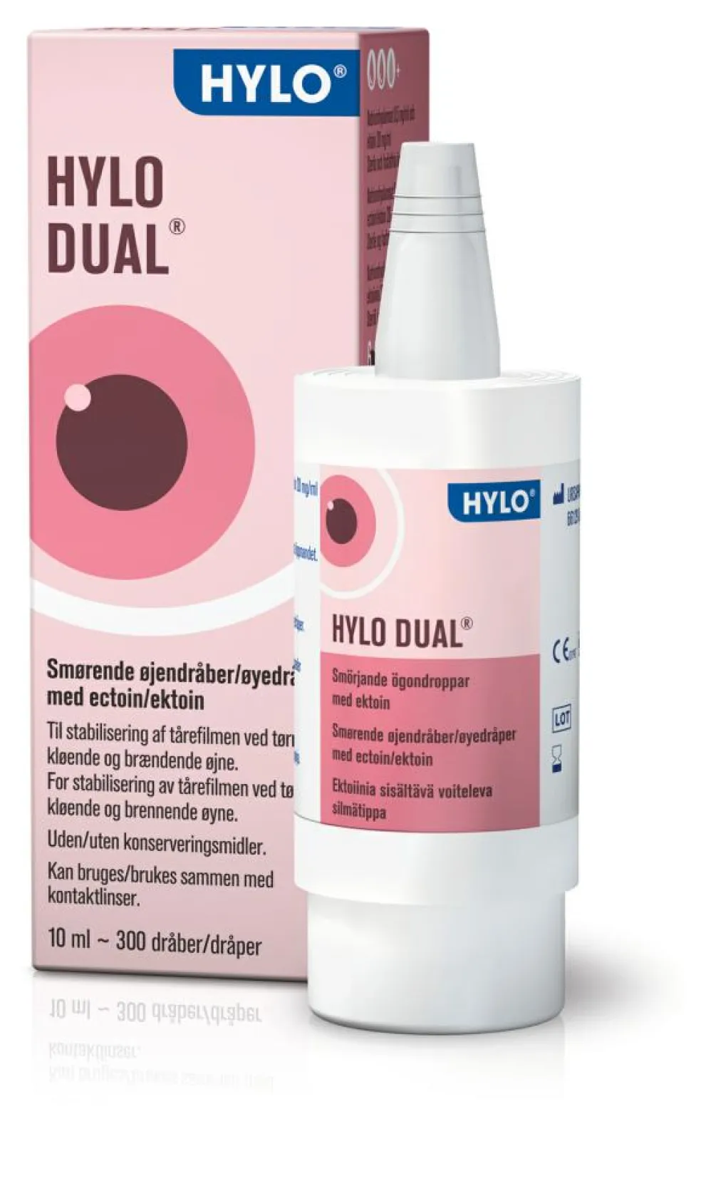 Læs indlægssedlen omhyggeligt. Den indeholder oplysninger, der hjælper dig med at anvende HYLO DUAL® korrekt.