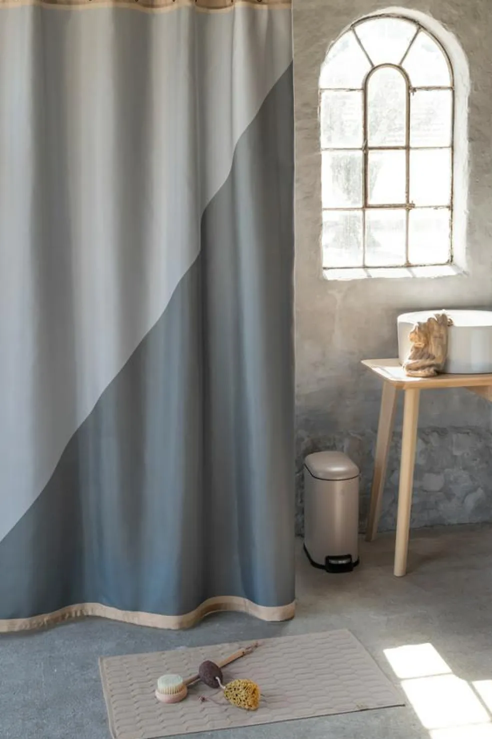 Badeforhænget er fremstillet i 100 % polyester og er skimmel- og vandafvisende.