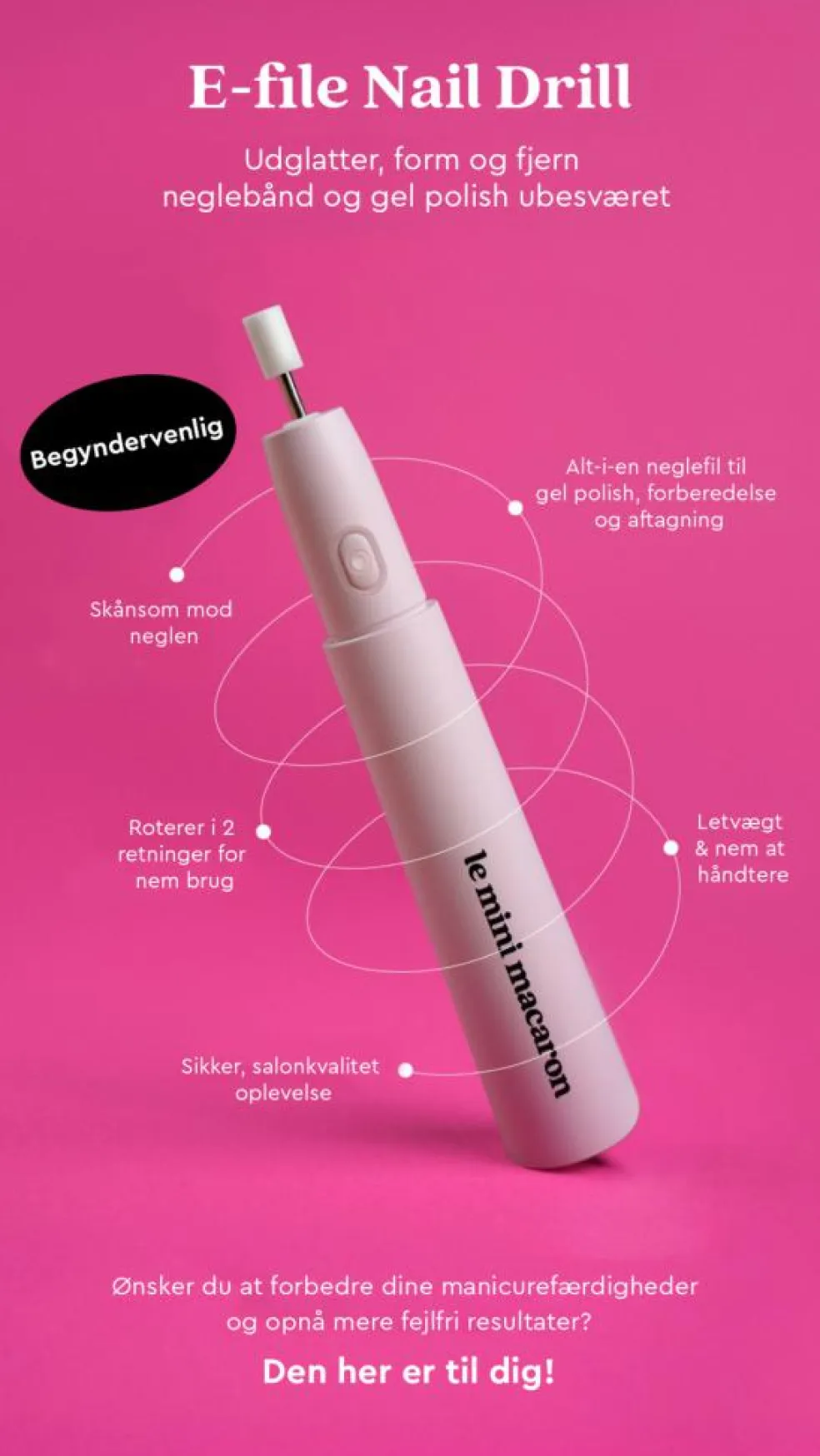 Den er støjsvag, vibrationsfri og nem at betjene, hvilket sikrer en behagelig og præcis neglepleje. Med to rotationsretninger er den ideel for både højre- og venstrehåndede. Hvis filen overbelastes, stopper den automatisk for at beskytte både bruger og produkt.