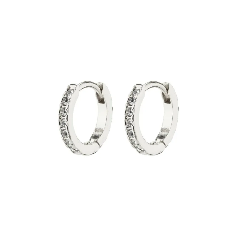 Silvery simplicity, En all-time favourite, som du kan bruge til alt. Klassiske små øreringe dekoreret med Preciosa-krystaller, som tilføjer lidt ekstra shine og glam. De sølvbelagte mini hoops er perfekte til everyday looks, der skal have et diskret touch af sparkle. Øreringene har en smart kliklås, der gør dem lette at anvende.