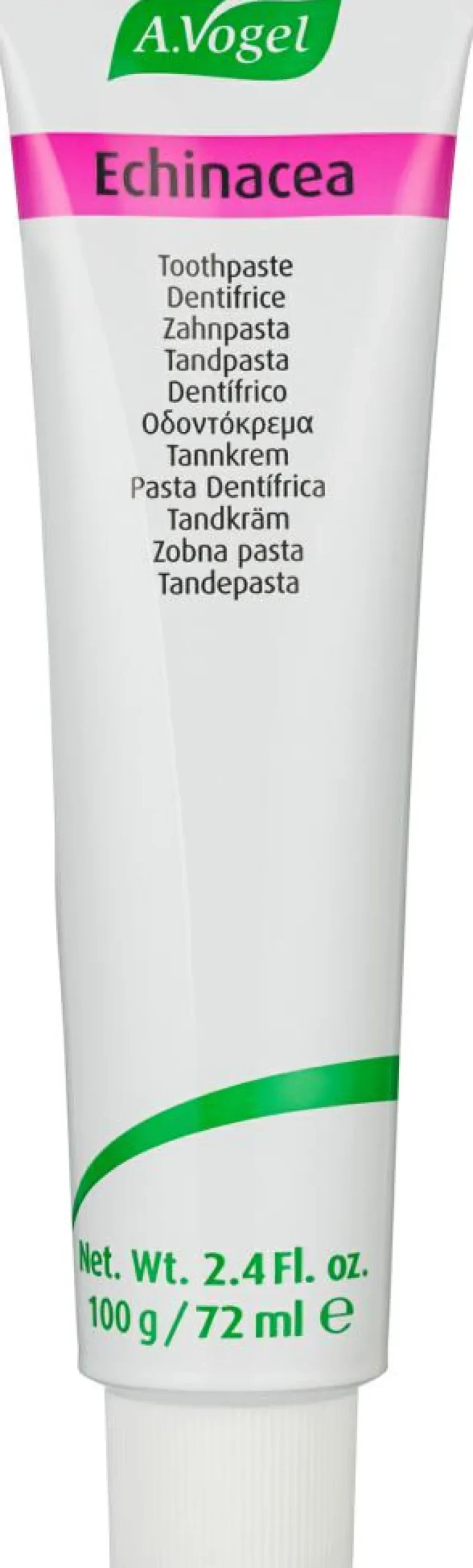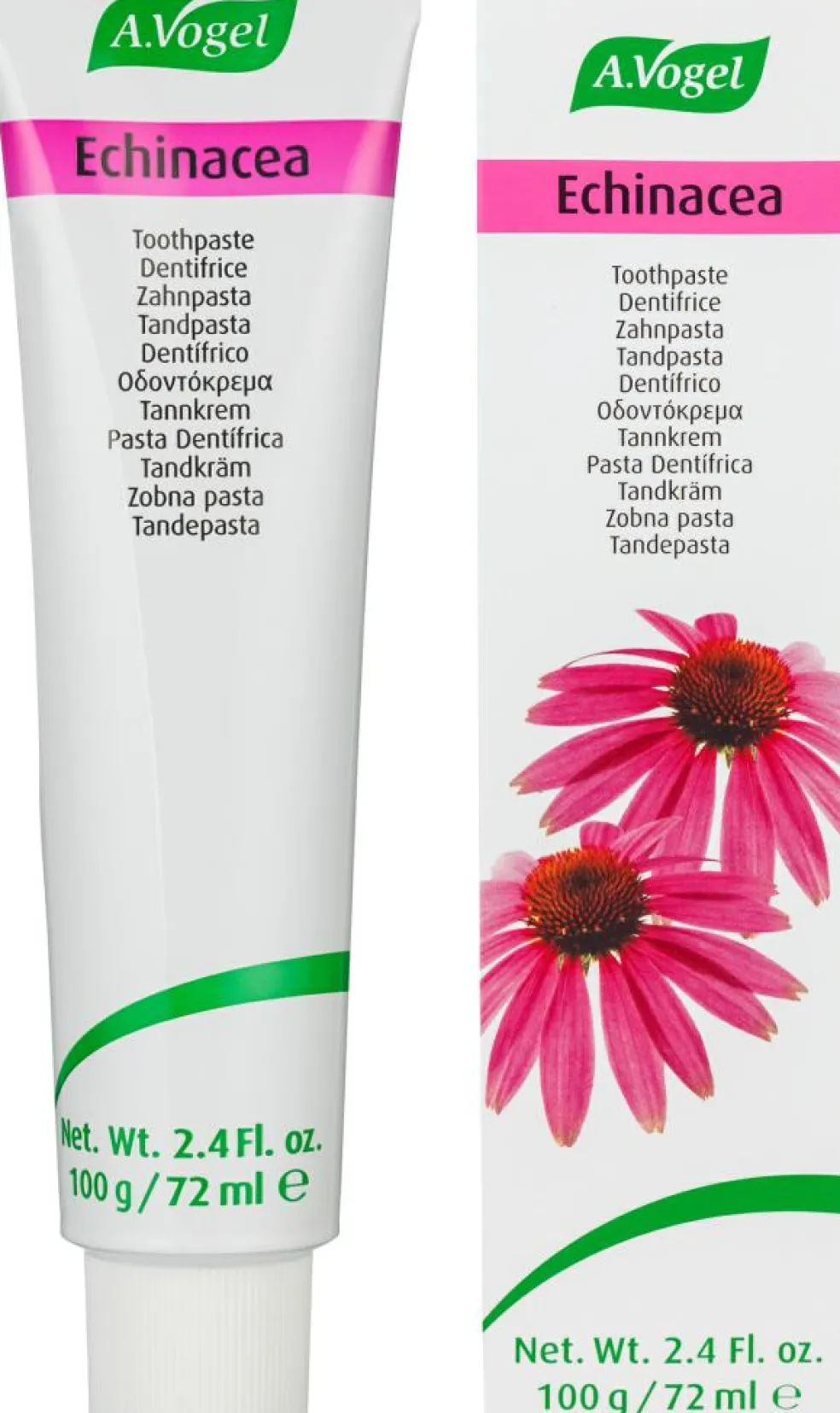Echinacea tandpasta er specielt sammensat for at give hvide tænder, et stærkt og sundt tandkød og en bedre mundhygiejne. Udtrækket kommer fra 100 % friske echinacea purpurea (rød solhat), som bearbejdes straks efter høsttidspunkt for at bibeholde de aktive stoffer. Fri for fluor, slibemiddel og skummemiddel.
