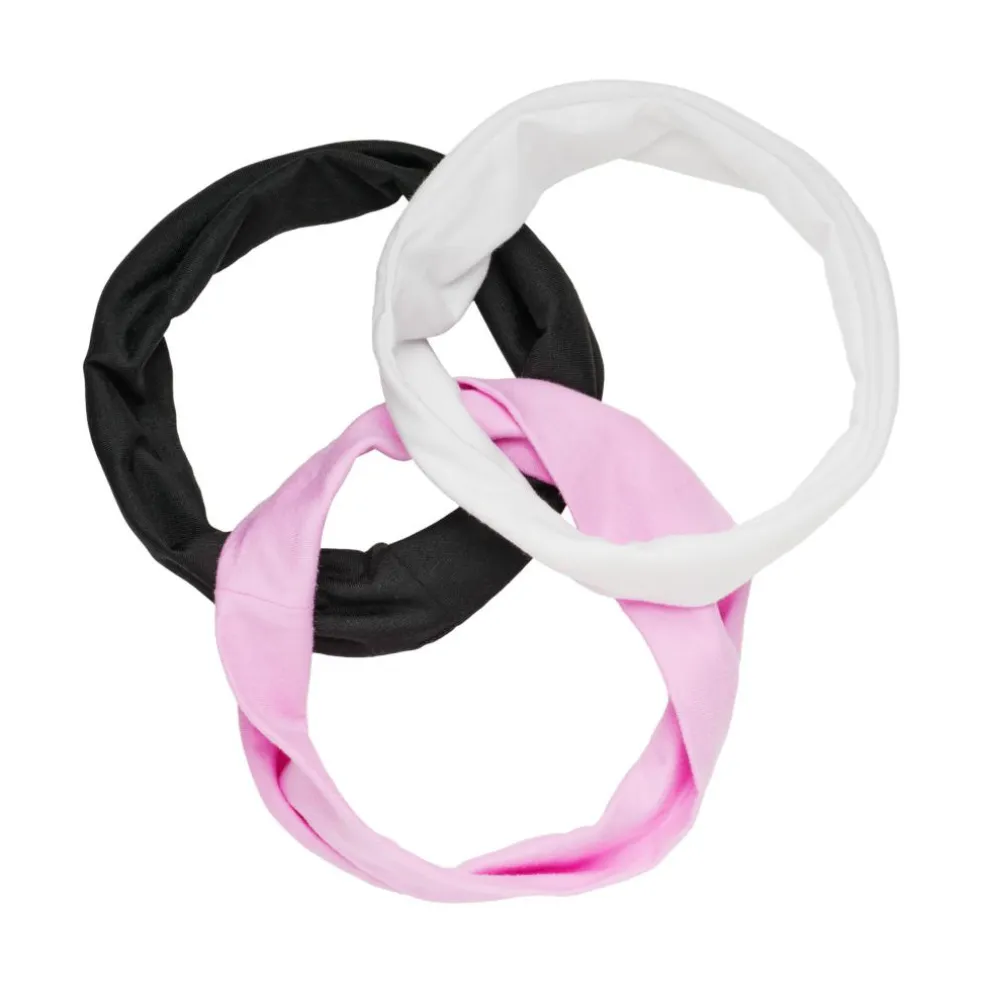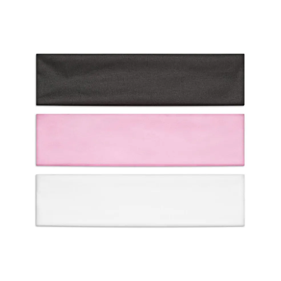 Praktiske og flotte hårbånd, som er smukke både til en opsat frisure og i løst hår. De er også perfekte til at holde håret væk, når du udfører din hudplejerutine. 3-pak med et hvidt, et sort og et lyserødt.