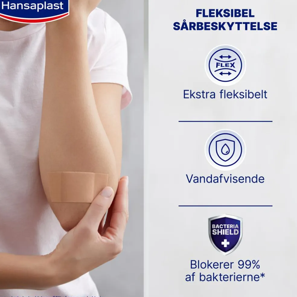 Hansaplast Elastic Plaster Bigpack er en stor pakke med plastre, som er ekstra fleksible.