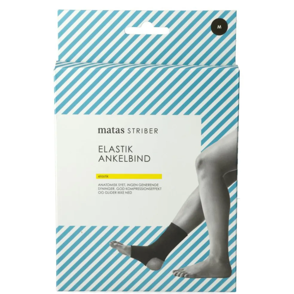 Ankelbindet er sort med højkvalitets elastik, som beholder elasticiteten. Det er anatomisk udformet, hvilket giver en komfortabel pasform både ved udøvelse af sport og til almindelig brug. Kan anvendes i sko og har ingen generende syninger.