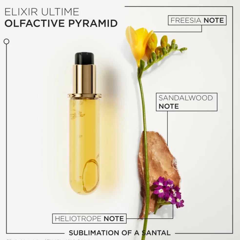 Pakken med Elixir Ultime hårolie er lavet til at holde, og har en glasflakon, der kan genopfyldes og ser fantastisk ud på enhver beauty-hylde. Det nye format reducerer brugen af plast og glas i vores olier. Glasflakonen er lavet af 30 % genanvendt glas, og refill-olien er lavet af 95 % genanvendt plast**.