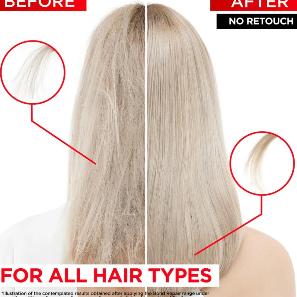 Dit hårstrå er opbygget af millioner af bindinger som giver det struktur og styrke. Når vi belaster håret ved at børste, blege og farve det samt anvende varmeredskaber, bliver hårstrået svagere og skadet så bindingerne brister. Formlen i Bond Repair-serien fra Elvital er beriget med citronsyre og trænger ind under overfladen og ind til hårets cortex for at bidrage til at styrke og genopbygge skadede hårbindinger. Vi anbefaler at anvende hele Bond Repair-rutinen for et optimalt resultat.
