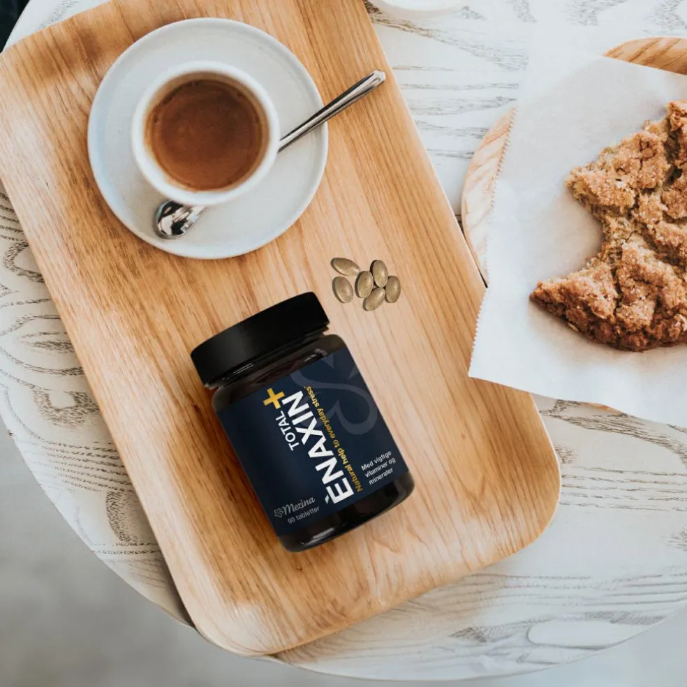 Udover schizandra, russisk rod og maté indeholder Ènaxin+ Total også 14 vigtige vitaminer og mineraler, og kan derfor med fordel erstatte den daglige multivitamin- og mineraltablet.