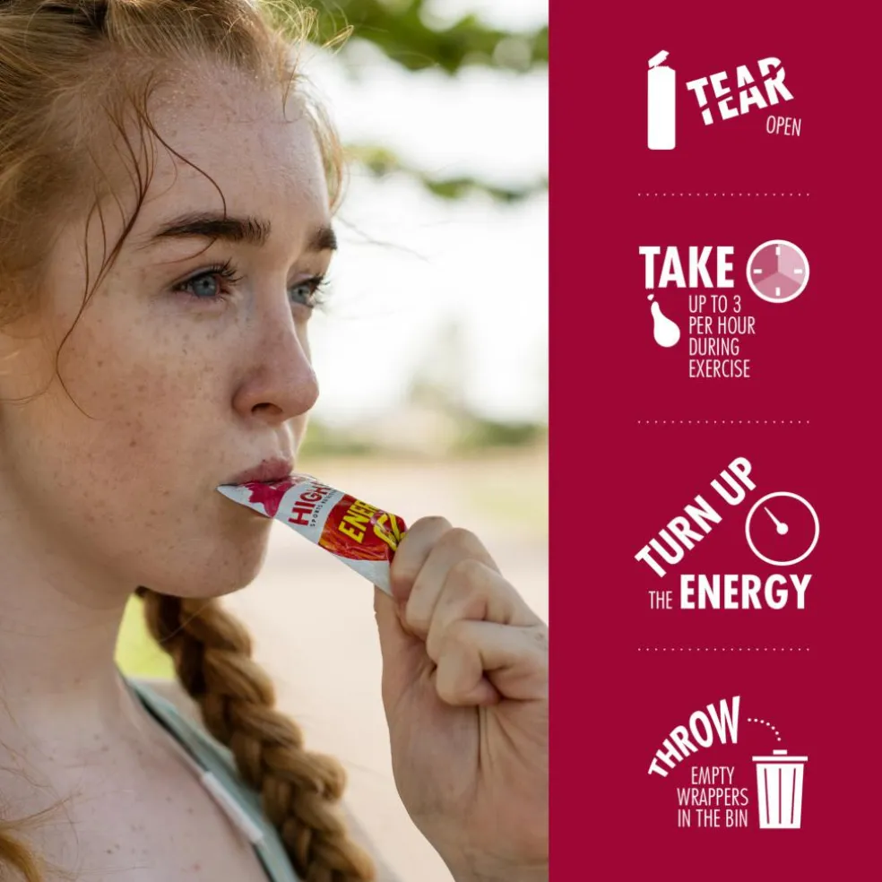 High5 Energy Gel med bærsmag er lavet på ægte frugtjuice, og har en frisk smag af hindbær og tranebær. Konsistensen er letflydende, og er derfor let og lækker at bruge. Man behøver derfor ikke at indtage vand efter indtagelse. Emballagen åbnes let, og den kompakte størrelsen og praktiske forpakning gør den let at medbringe på cykelturen, løbeturen, eller andre fysiske aktiviteter.