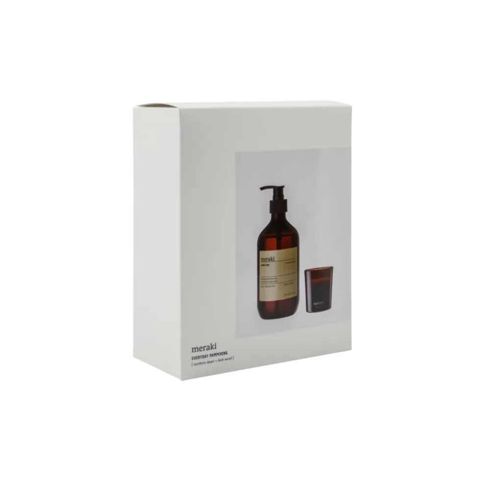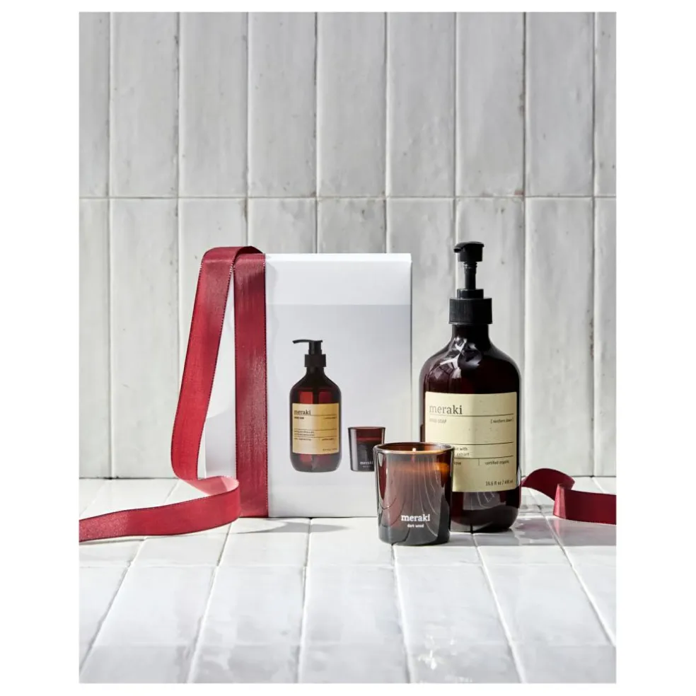 Denne gaveæske fra Meraki er lækker hudpleje til hænderne med en håndsæbe og en håndlotion.