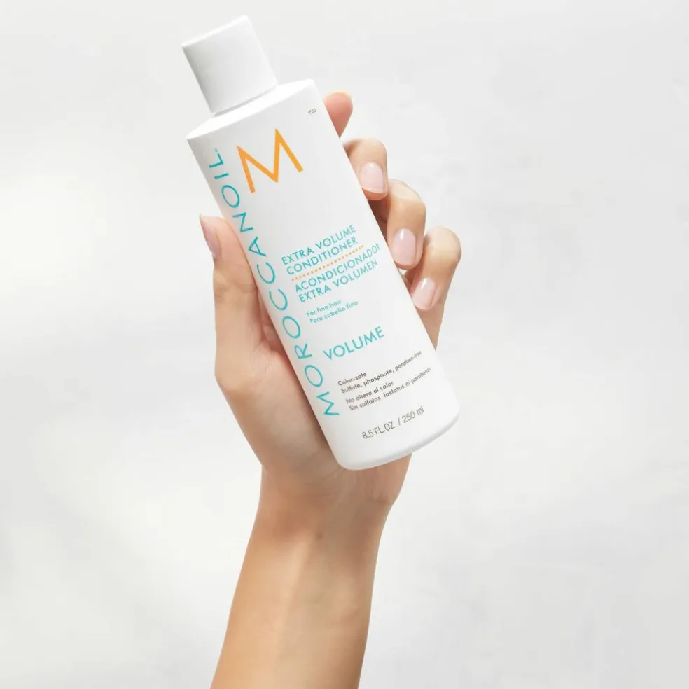 Moroccanoil Extra Volumen conditioner indeholder arganolie og ekstrakt fra Lindetræsknopper. Arganolien tilfører fugt, pleje og næring til håret, mens ekstrakten fra lindetræsknopper, tilfører et naturligt løft til håret og giver masser af fylde samt glans.