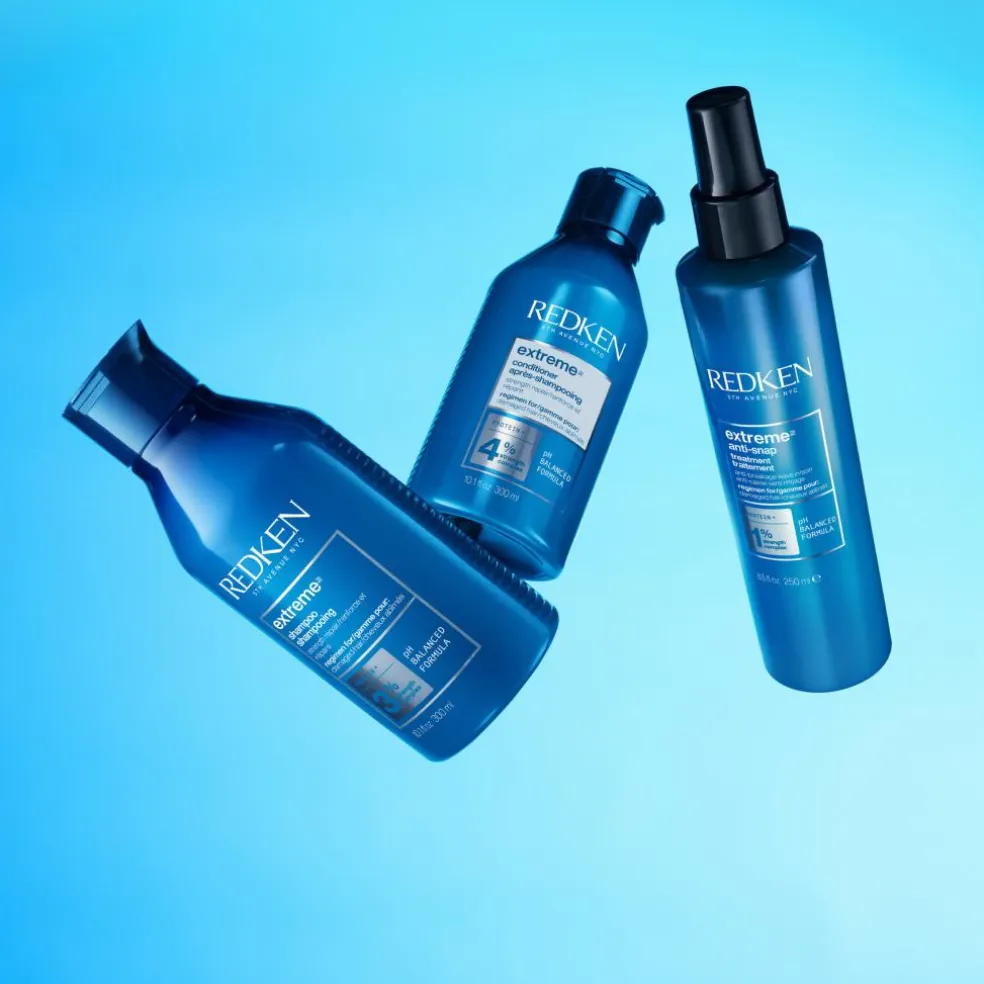 Professionelle anbefaler at behandle skadet hår med den komplette Extreme-hårplejeserie.
