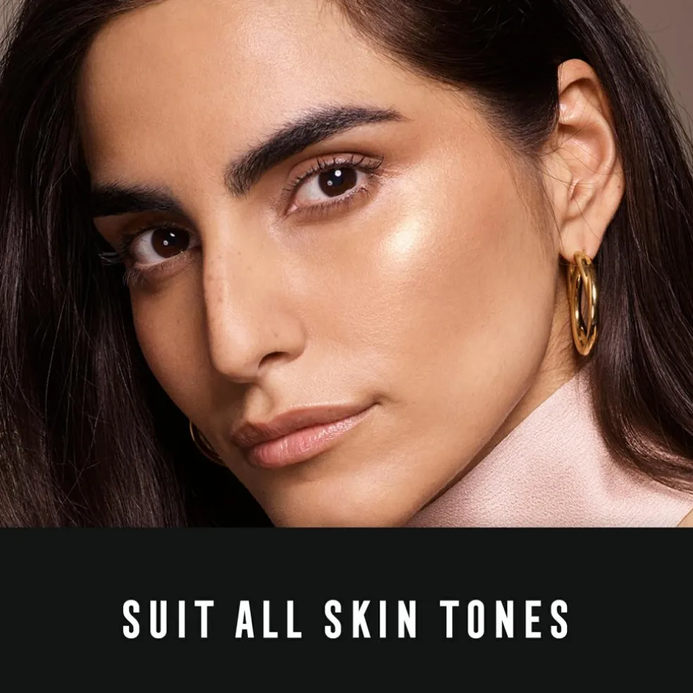 For en endnu mere strålende look, kan du påføre highlighteren på kravebenene eller décolleté. Dette giver en subtil glød også på kroppen og fuldender din look perfekt.