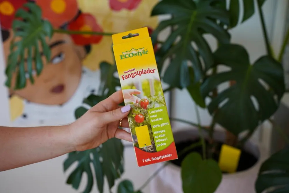 ECOstyle InsektFri Fangstplader InsektFri fangstplader hænges op eller stikkes i jorden inde, ude, i drivhus, udestue m.m. Insekterne bliver tiltrukket af den gule farve på pladen. Den klistrede flade på pladen holder insekterne fast.