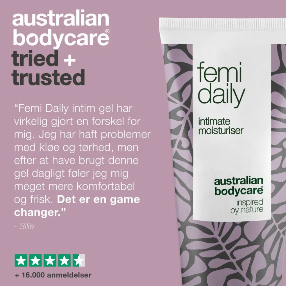 Femi Daily lindrer intime gener som kløe, uønsket lugt og tørhed omkring skeden og i det øvrige intimområde.
