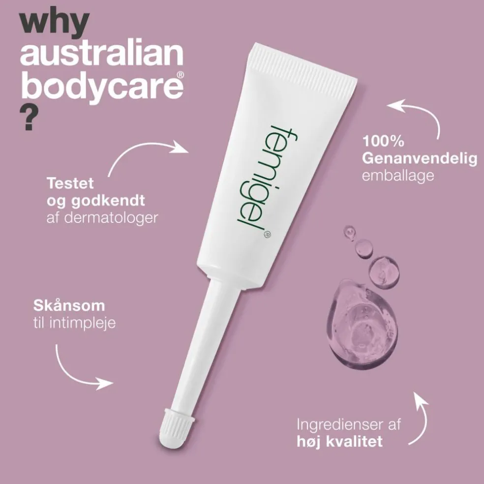 Femigel modvirker uønsket lugt fra skeden og det øvrige intimområde og anbefales også, hvis du oplever tørhed og kløe omkring skedeåbningen eller på de ydre kønslæber.