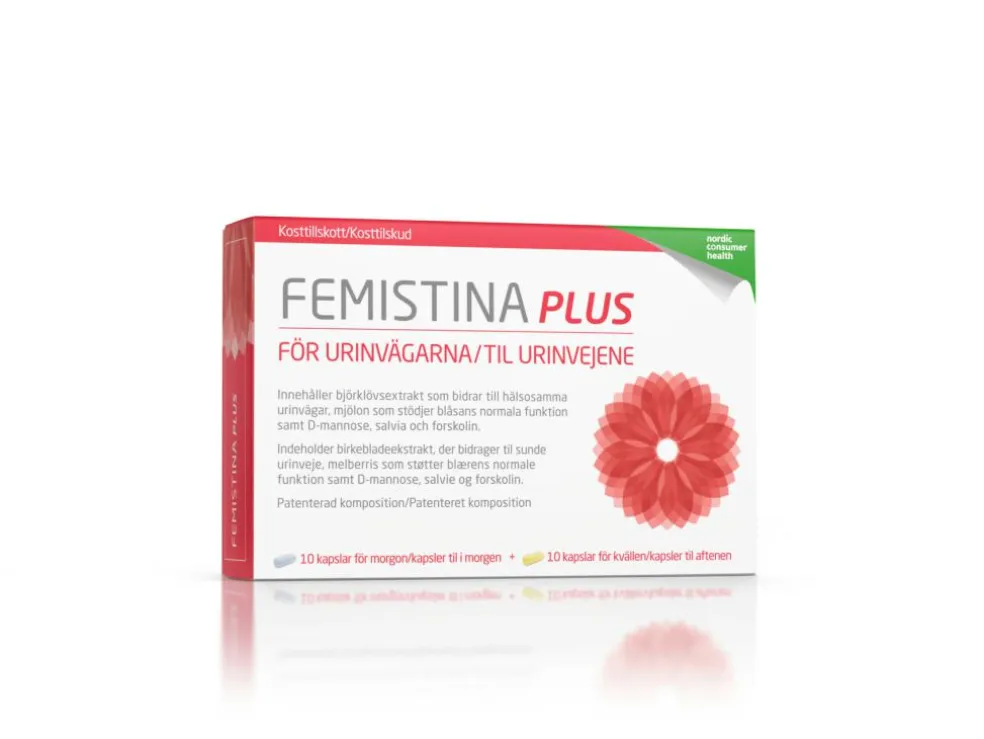 Femistina Plus indeholder birkebladsekstrakt som vedligeholder sunde urinveje og melbærris som støtter blærens normale funktion.