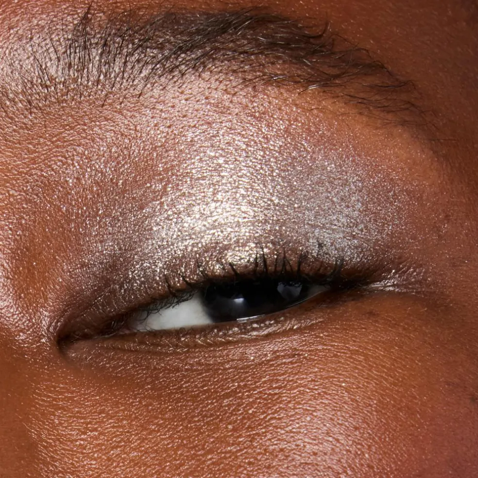 Påfør over øjenskygger for at skabe fremhævelse og ekstra dimension på øjenlågene, eller tryk den på nøgne