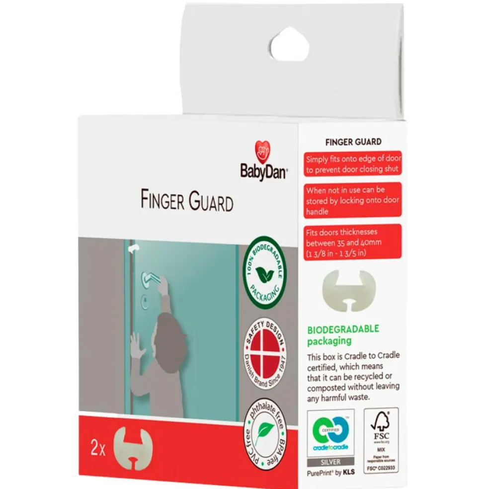 Fingerbeskytteren er i en 100% bionedbrydelig emballage og er Cradle to Cradle certificeret. Det betyder, at emballagen vil blive nedbrudt naturligt og efterlader ingen spor, som kunne skade vores planet. På den måde kan du beskytte din lille guldklump fra ulykker og tage ansvar for den verden, som dit barn vokser op i.