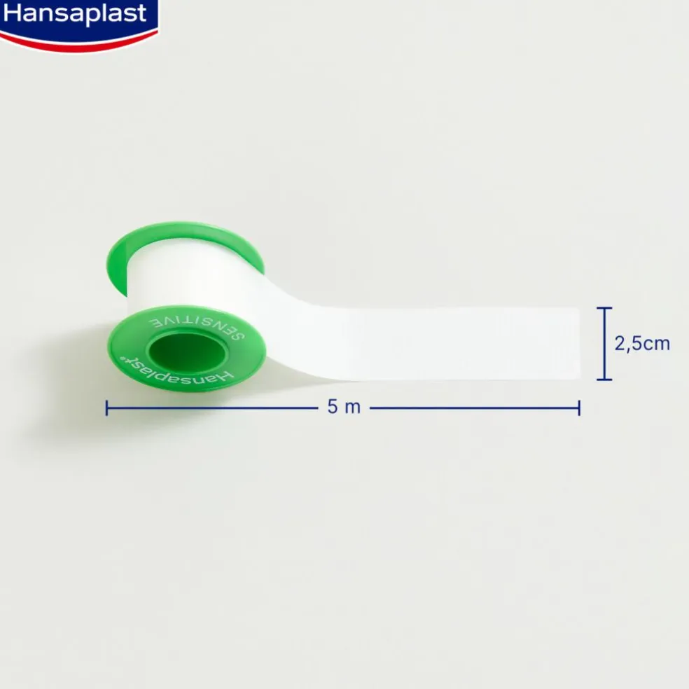 Hansaplast Sensitive Fixation Tape er udviklet til at være nænsom mod sart hud og behagelig at have på og er latexfri.