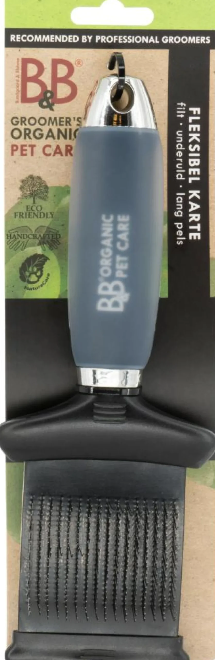 Kan med fordel kombineres med B&B’s rullekam til dobbeltpelse eller B&B’s guldkam til silkepelse, for at sikre en komplet filtfri pels.