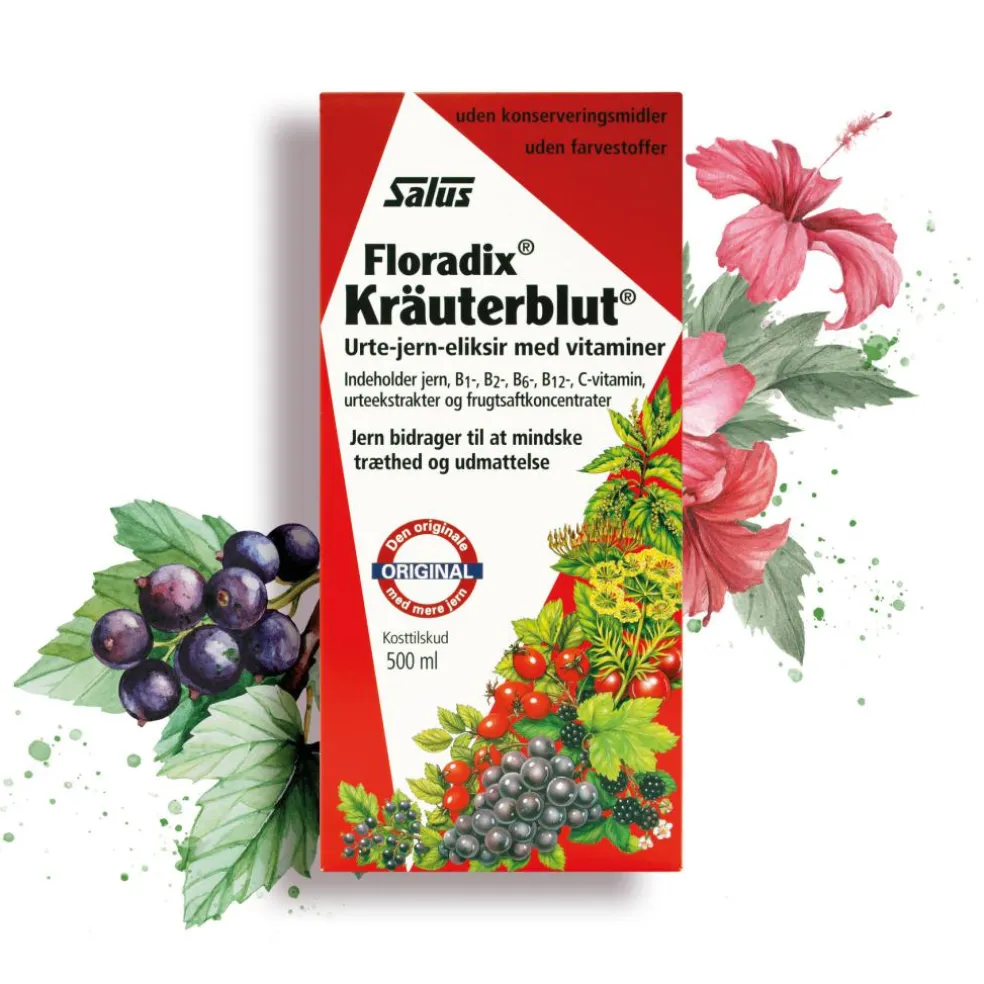 Jern bidrager desuden til normal dannelse af røde blodlegemer og hæmoglobin. Vitamin B6 og B12 bidrager til dannelsen af røde blodlegemer. Endvidere øger vitamin C optagelsen af jern.