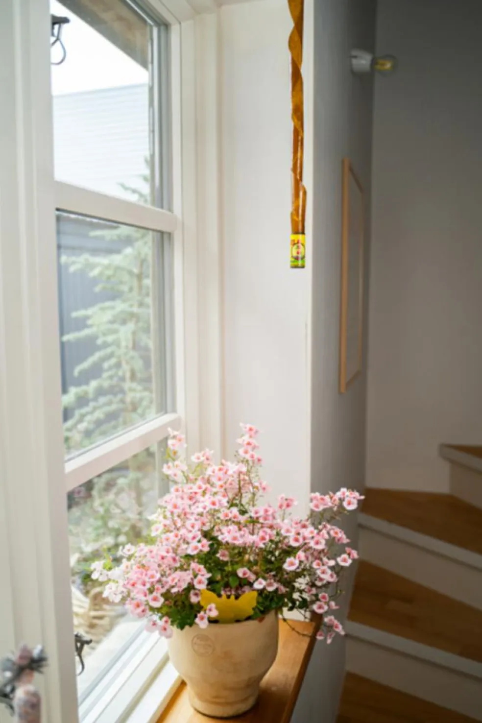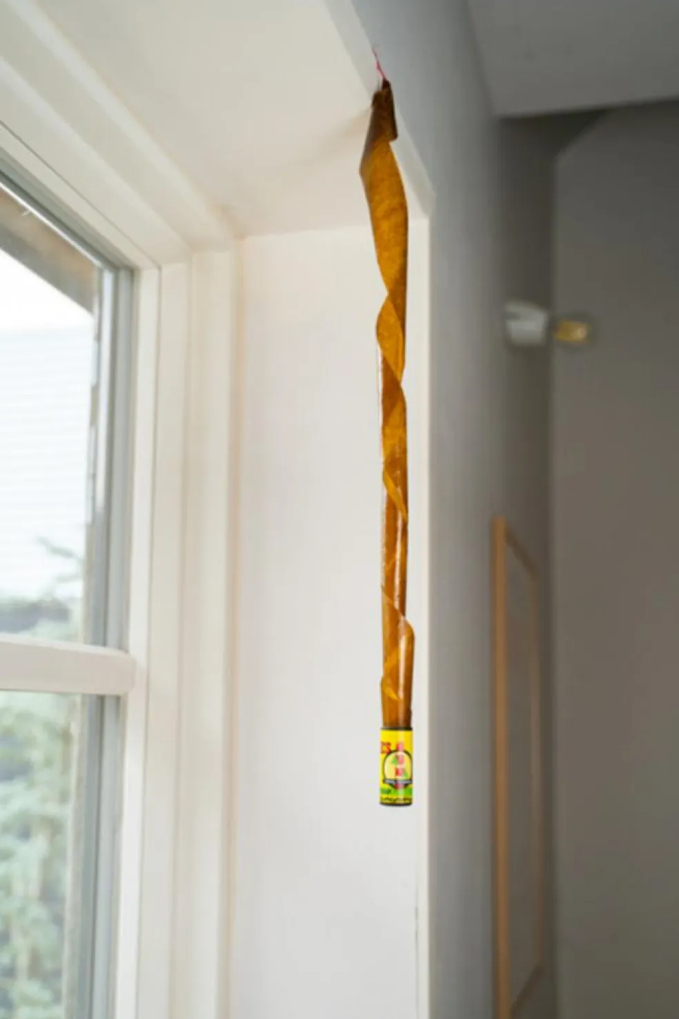 Hæng Trinol Fly Ribbon op ved at placere stiften gennem den røde sløjfe og placer fælden i et område, der plages af insekter eller fluer.