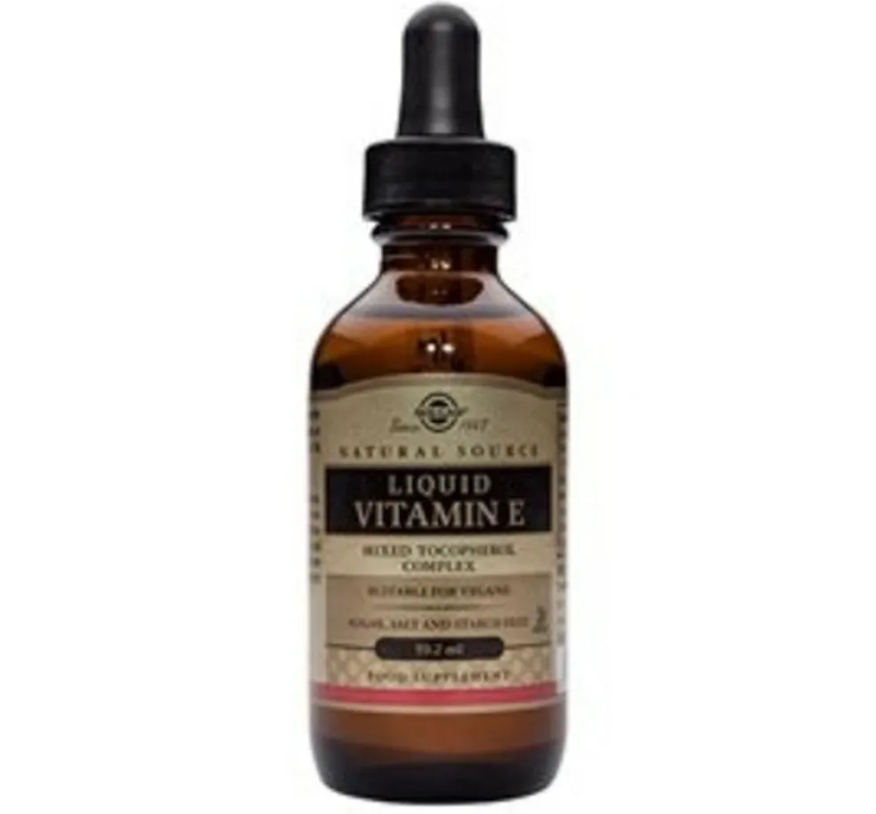 Flydende E-vitamin med pipette. Vitamin E bidrager til at beskytte cellerne mod oxidativt stress.