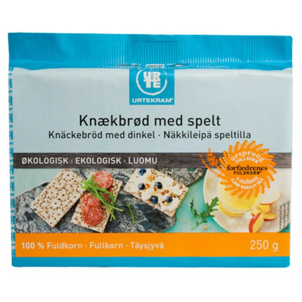 Klassisk rugknækbrød med et ekstra spelt-plus der giver en lidt nøddeagtig kant. Et knækbrød der kalder på koldt smør og lækkert pålæg.