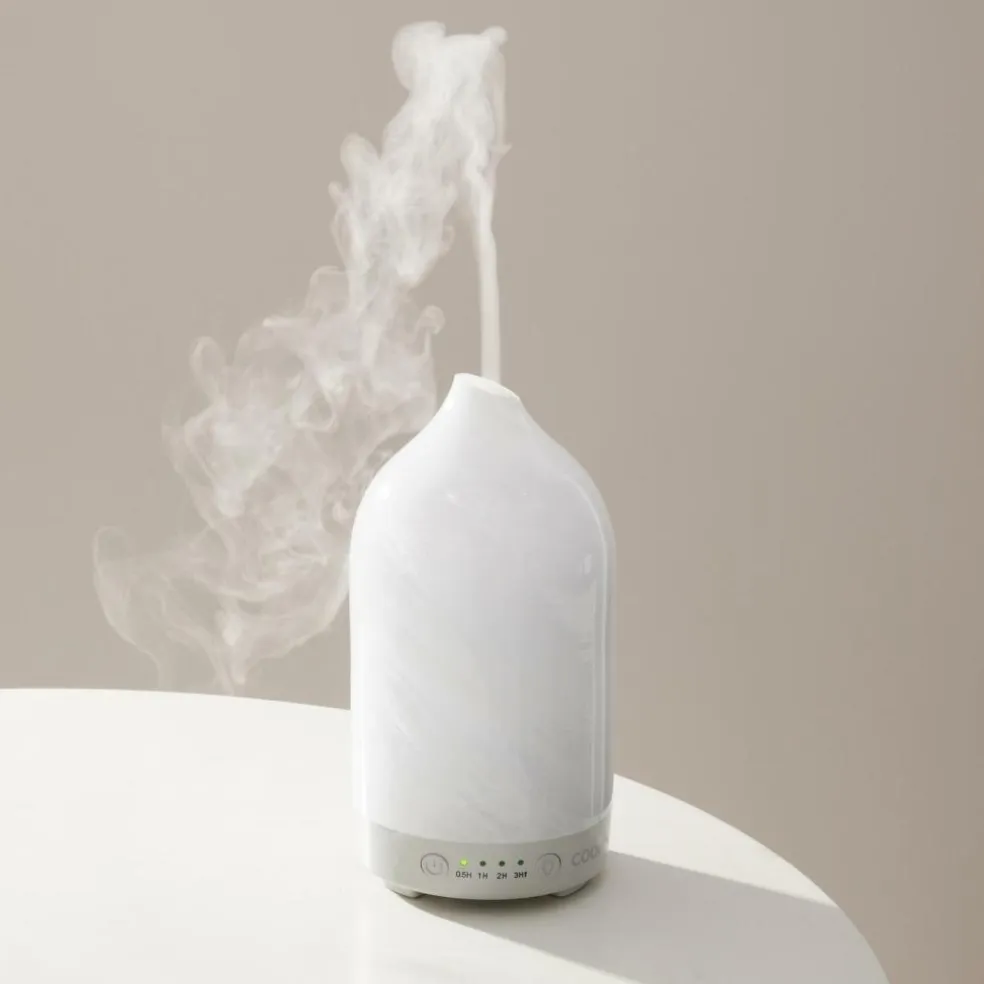 Den bruger ultralydsteknologi til at omdanne vand og æteriske olier til en fin, duftende tåge, der skaber ro, velvære og en smuk atmosfære.