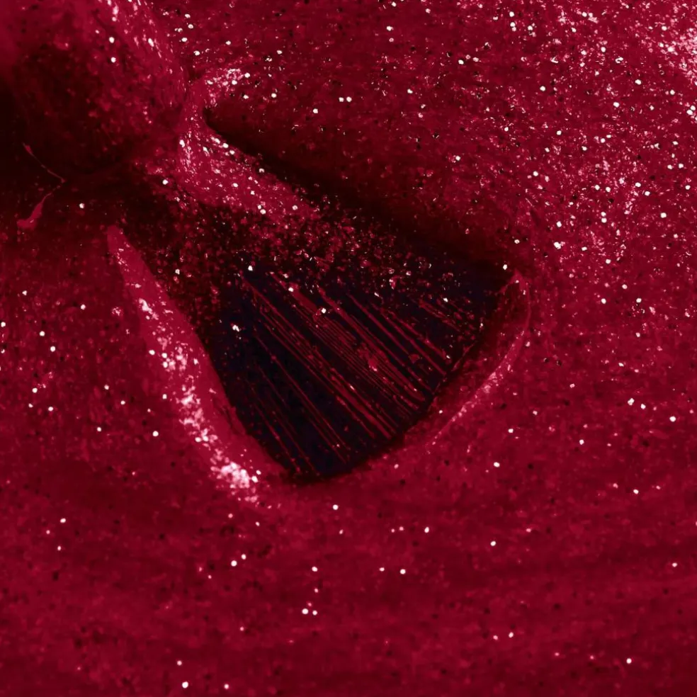 1-step Gel Manicure i den røde glimmerfarve Ruby Red.