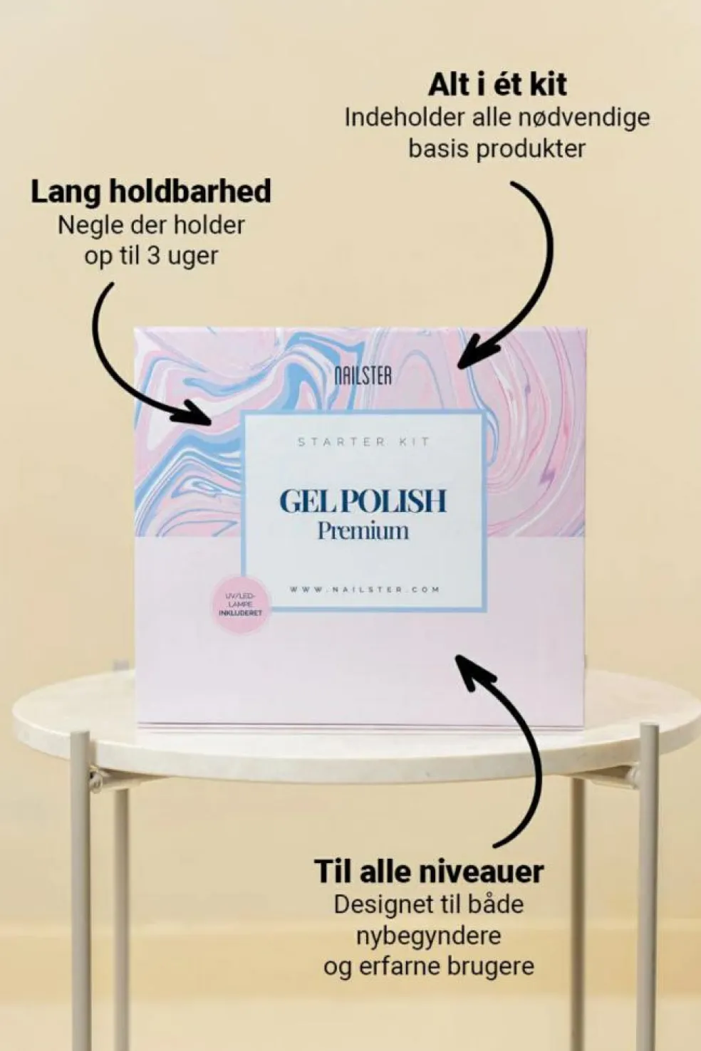 Starter Kit Premium indeholder alle de nødvendige basis produkter, redskaber, og vores Pro UV/LED lampe (48W), som hærder Gel Polishken.