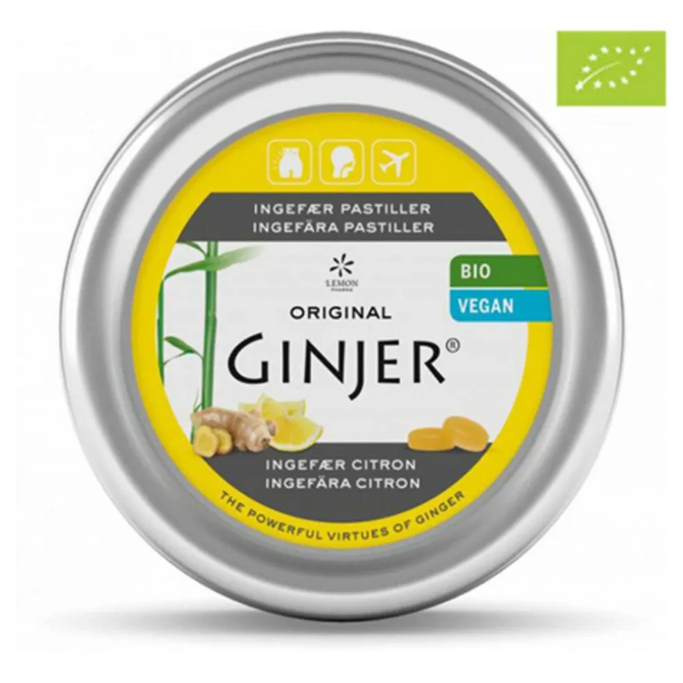 Dette er én af de 4 slags forskellige økologiske ingefærpastiller i samme Ginjer® serie: CITRON, ORANGE, MYNTE OG HONNING – prøv dem alle og find din favorit! De ligger i en lille metaldåse, som nemt kan bruges til andre småting, når pastillerne er spist!