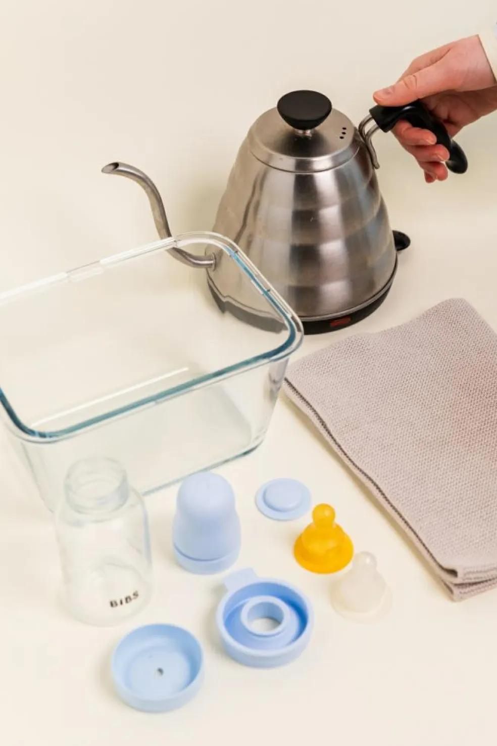 Selve flasken er lavet af borosilikatglas, der tåler høje temperaturer, er holdbart, afgiver ingen skadelige stoffer til mælken og meget mere.