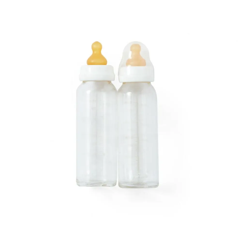 2-pack Glasflaske 120ml med naturgummisut 0-3 mdr.