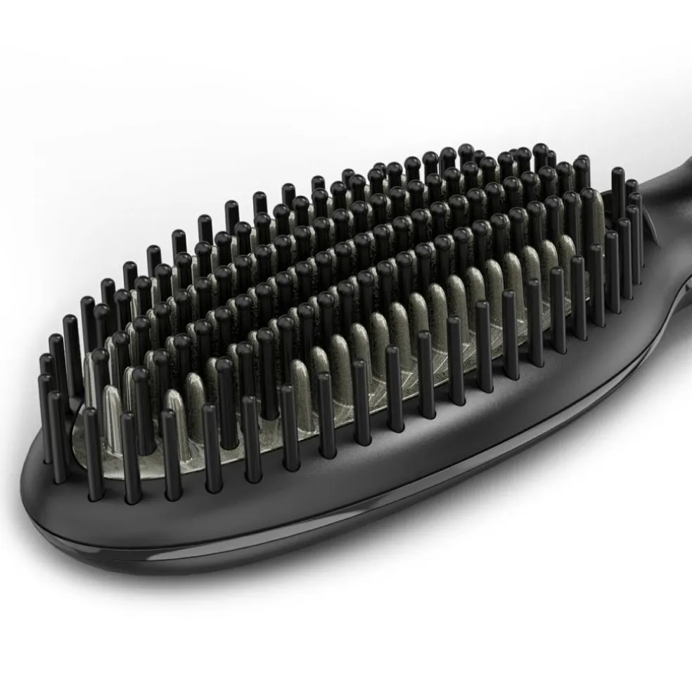 Den keramiske teknologi med ioner varmer jævnt børsten op til den optimale temperatur på 185°C – noget som garanterer hår med et sundt udseende.