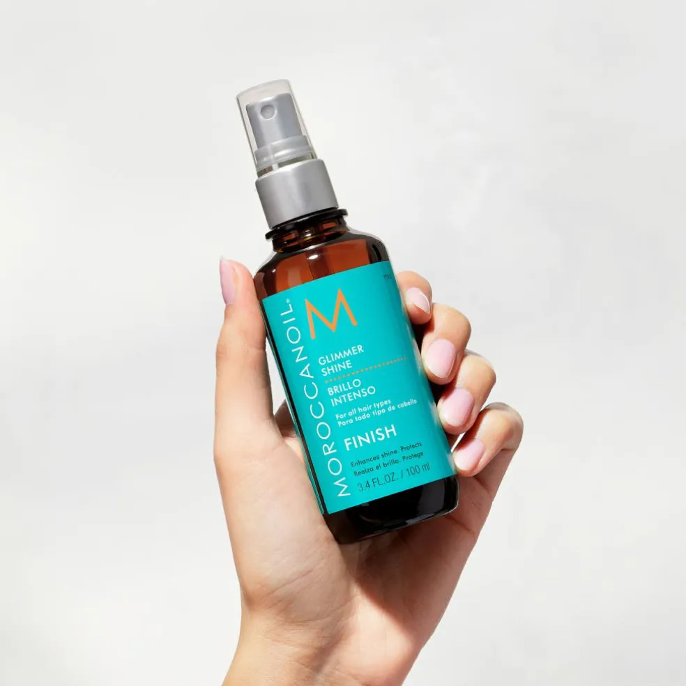 Moroccanoil Glimmer Shine indeholder arganolie, vitaminer og antioxidanter, der tilfører en øjeblikkelige glans samtidig med at den også beskytter håret imod miljømæssige påvirkninger som sol, saltvand og klor.
