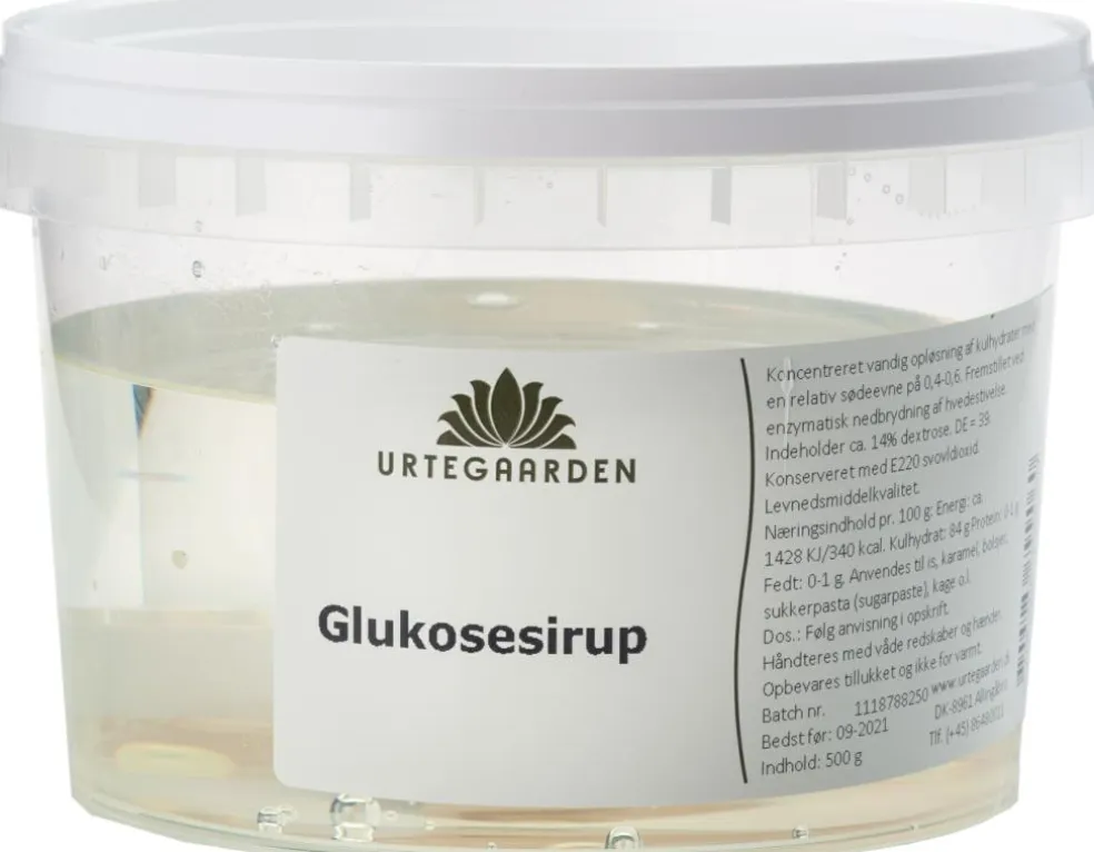 Glukosesirup er fremstillet ved enzymatisk nedbrydning af hvedestivelse. Siruppen indeholder ca. 14% dextrose og har en DE = 39. Den relative sødeevne i glukosesirup er 0,4-0,6.