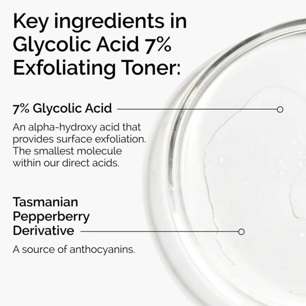 Glycolic Acid 7% Toning Solution indeholder derudover aminosyrer, der er kendt for dens anti-age effekt.