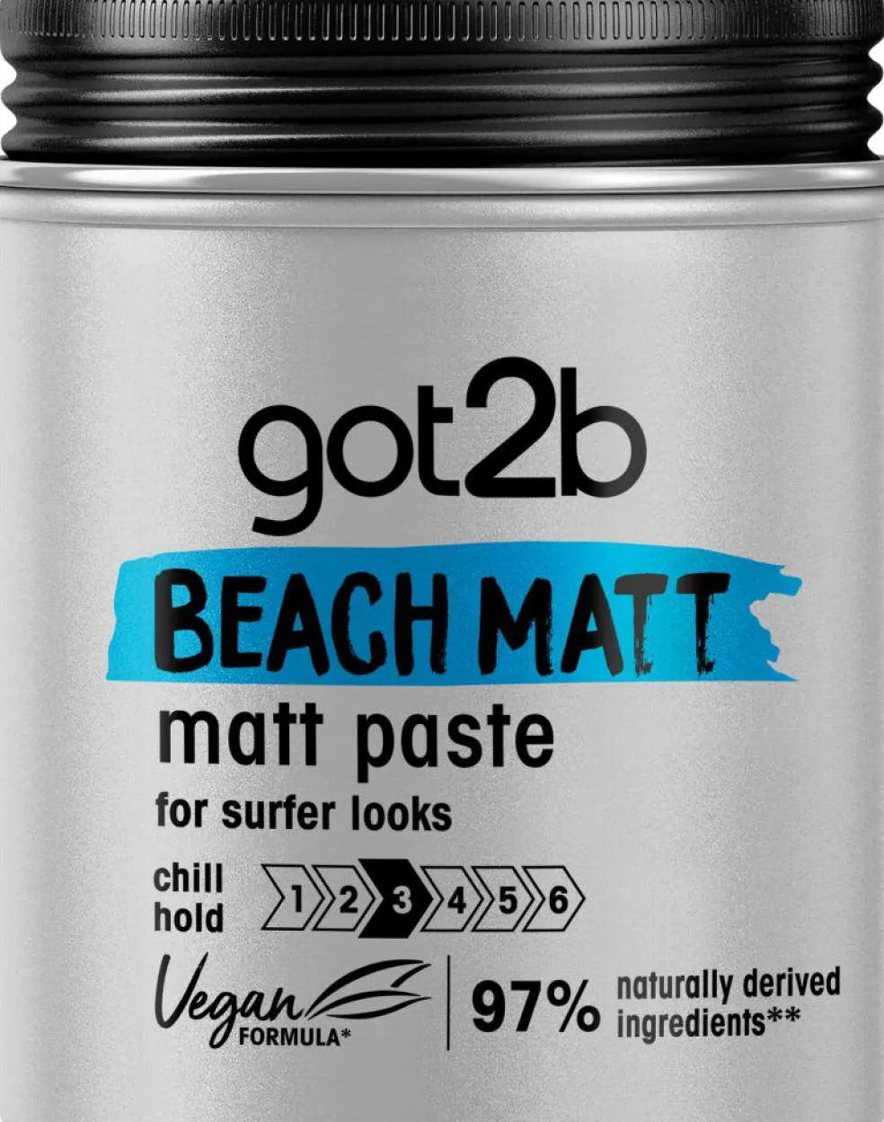 Slip surferlooket fri! Got2b Beach Matt Paste skaber matte surferfrisurer med tekstur og afslappet hold, uanset om håret er rodet, forviltret, tæmmet eller glat. Det vigtigste ved denne hårpaste er, at den er mat.