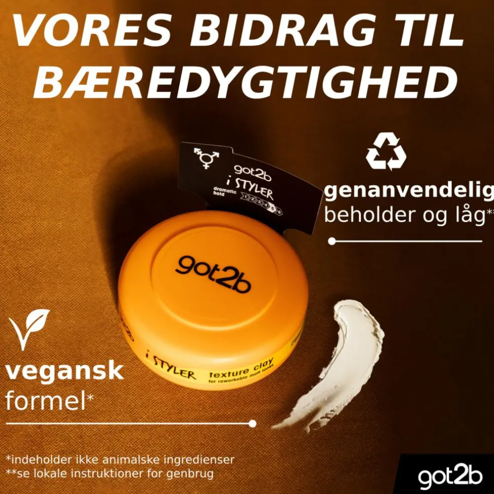 Dit hår, din stil! Got2b iStyler Texture Clay former og omformer et utal af frisurer med mat finish: pandekrøller, undercuts, sideskilninger eller fletninger med dramatisk hold.