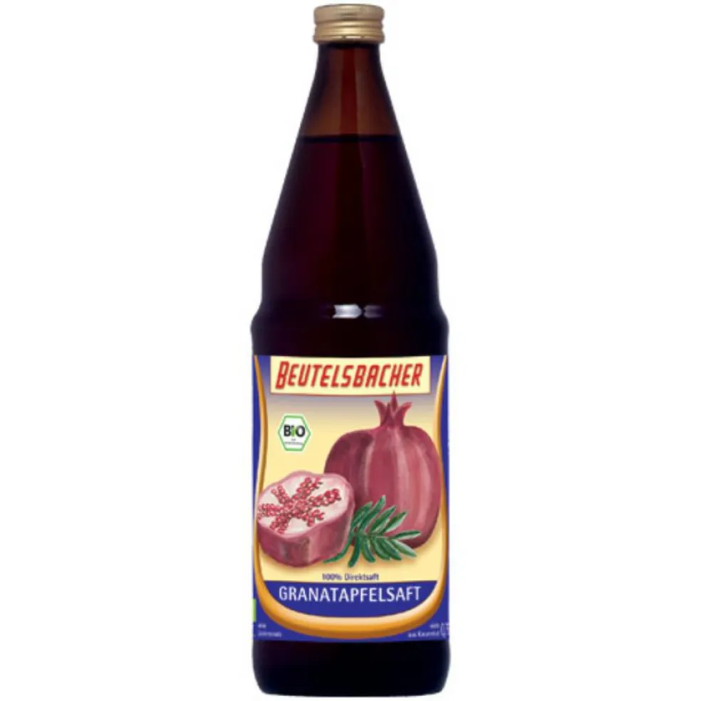 Når du åbner granatæblets uspiselige skal kommer en masse flotte røde frø til syne. Disse frø får Beutelsbacher presset nænsomt til en velsmagende, dyb rød granatæblejuice. Granatæblerne som anvendes er økologisk dyrket i Middelhavsområdet.