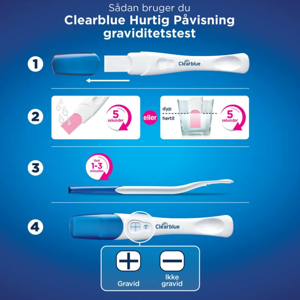 Du skal vente 3 minutter for at bekræfte et “Ikke gravid”-resultat. Den er designet til at være den mest brugervenlige hjemmegraviditetstest med en ekstra bred farveændringsspids og et ergonomisk, buet håndtag.