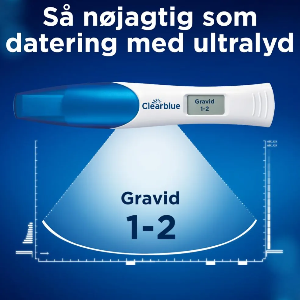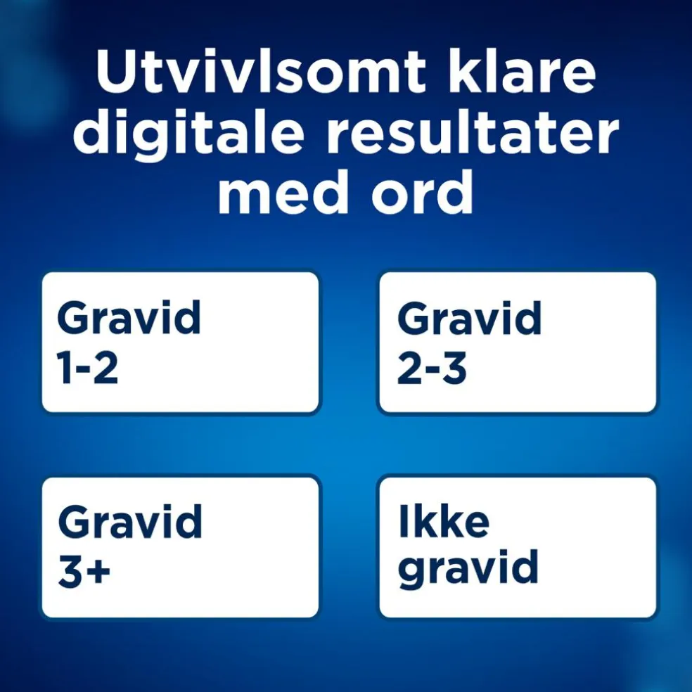 Testen fortæller dig om du er gravid eller ej, og hvor mange uger du er henne – ugerne siden undfangelse vises som 1-2, 2-3 eller 3+ på skærmen.