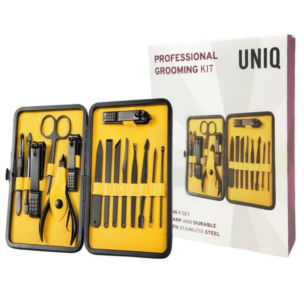 UNIQ Grooming Sæt til Negle, Sort – det komplette sæt til perfekt pleje af dine negle og dit udseende. Dette omfattende sæt sikrer, at du altid har de nødvendige redskaber ved hånden til at pleje både hænder, fødder og ansigt. Uanset om du er hjemme eller på farten, giver dette sæt dig mulighed for at opretholde en velplejet stil.